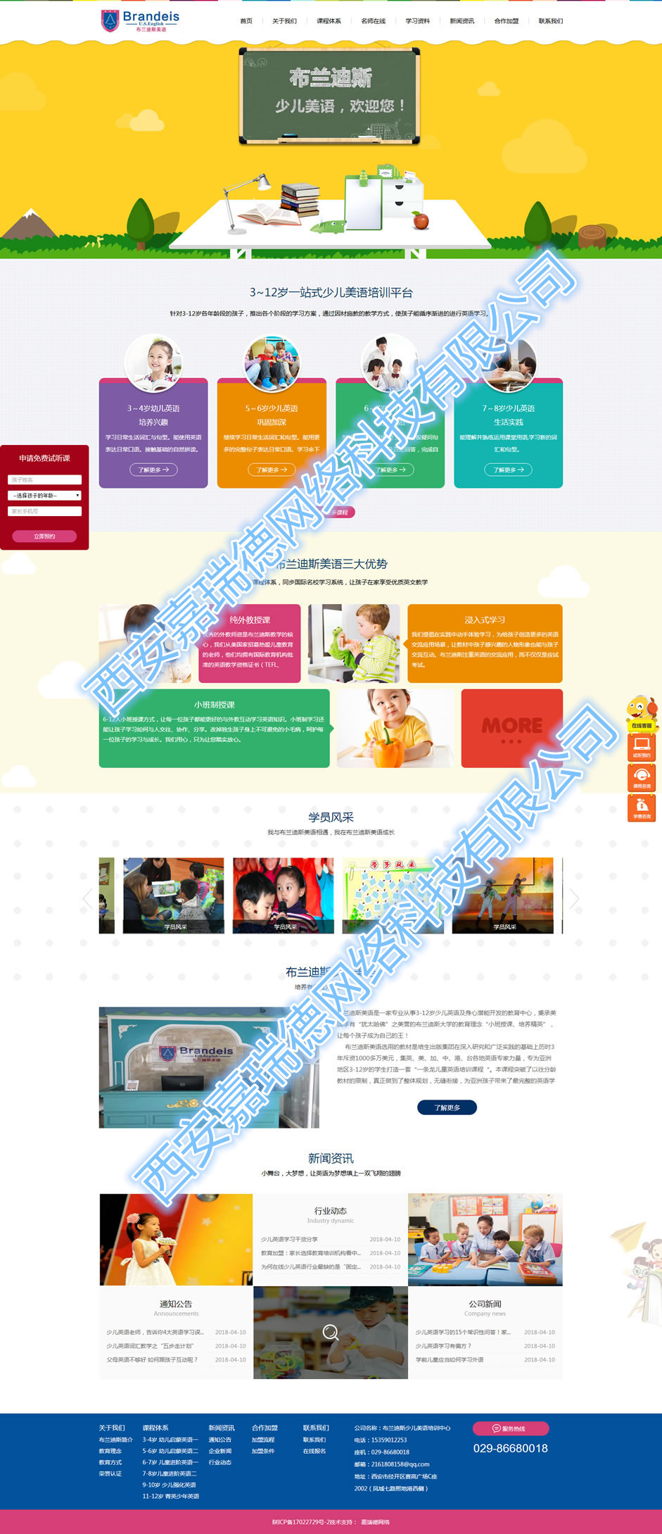 布蘭迪斯美語是一家專業(yè)從事3-12歲少兒英語及身心潛能開發(fā)的教育中心,秉承美國享有“猶太哈佛”之美譽(yù)的布蘭迪斯大學(xué)的教育理念“小班授課、培養(yǎng)精英”,讓每個(gè)孩子成為自己的王! 布蘭迪斯美語選用的教材是培生出版集團(tuán)在深入研究和廣泛實(shí)踐的基礎(chǔ)上歷時(shí)3年斥資1000多萬美元,集英、美、加、中、港、臺(tái)各地英語專家力量,專為亞洲地區(qū)3-12歲的學(xué)生打造一套“一條龍兒童英語培訓(xùn)課程“。本課程突破了以往分齡教材的限制,真正做到了整體規(guī)劃,無縫銜接,為亞洲孩子帶來了最完整的英語學(xué)習(xí)解決方案。 布蘭迪斯美